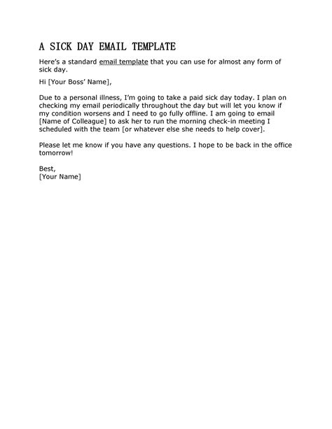 Simple Sick Day Email Example . Simple sick day email for unpaid time off. Sick day notification for (date) hi (your boss’ name), i will be taking a paid sick day today.